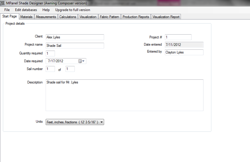 MPanel Shade Designer will automatically open. On the first page, enter all the information