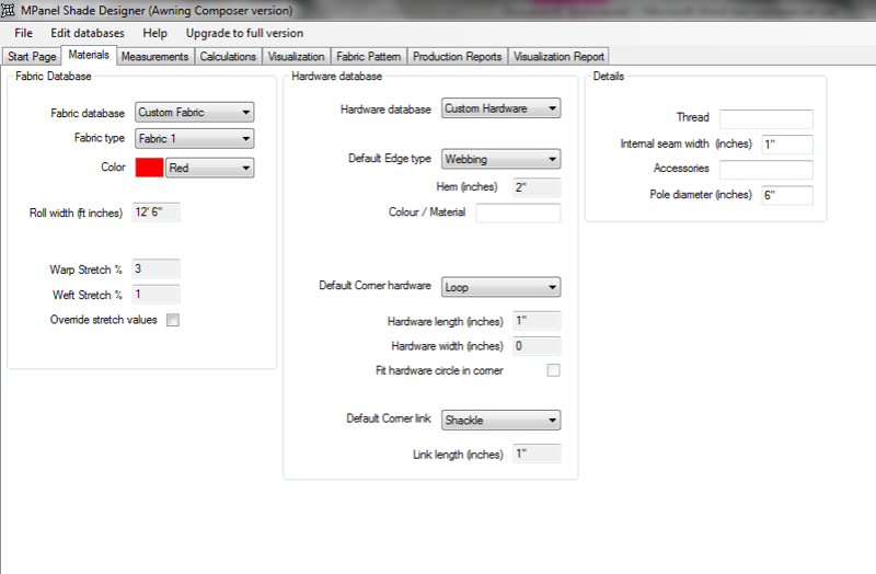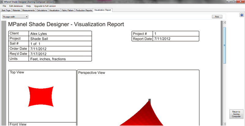 MPanel Shade Designer Version 3.0 and Awning Composer were used.