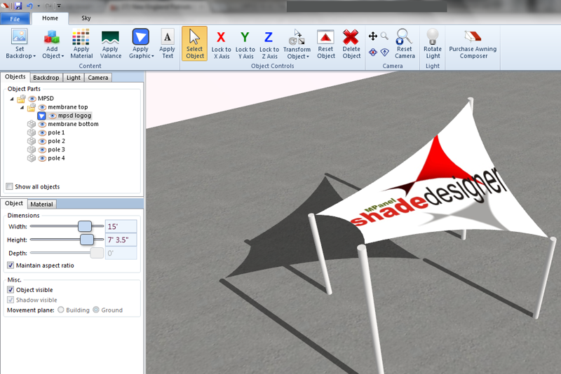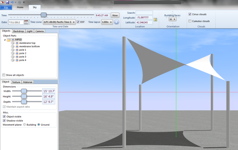 This guide will demonstrate how to create a sail and display the shadows for your shade sail, at